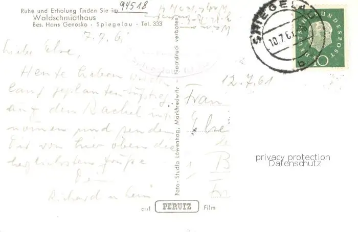 Spiegelau Waldschmidthaus auf dem Grossen Rachel Spiegelau postalisch gelaufen 1961 Erhaltung siehe scans [FriedD77] Frierer