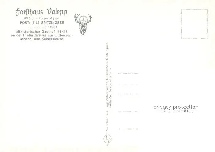 Spitzingsee Althist Gasthof Forsthaus Valepp Panorama Spitzingsee postalisch nicht gelaufen nach 1965 Erhaltung siehe scans [WerneD78] WernPID7