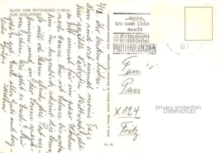 Spitzingsee Blick vom Spitzingsee zum Schliersee Spitzingsee postalisch gelaufen nach 1965 Erhaltung siehe scans [FriedD77] Frierer