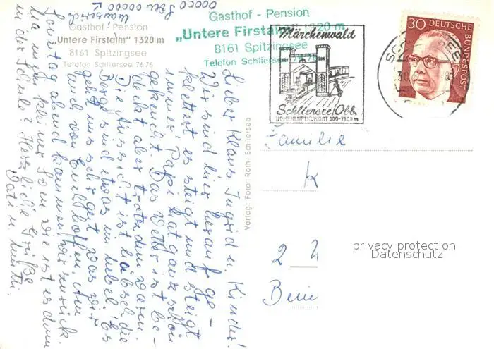 Spitzingsee Gasthof Pension Untere Firstalm Spitzingsee postalisch gelaufen 1921-1965 Erhaltung siehe scans [KathaD81] Kathoren