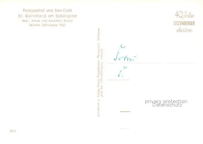 Spitzingsee Postgasthof und See-Café St. Bernhard Restaurant Alpenpanorama Spitzingsee postalisch nicht gelaufen nach 1965 Erhaltung siehe scans [FriedD77] Frierer