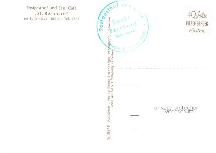 Spitzingsee Postgasthof und See-Café St. Bernhard am Spitzingsee Spitzingsee postalisch nicht gelaufen nach 1965 Erhaltung siehe scans [FriedD77] Frierer