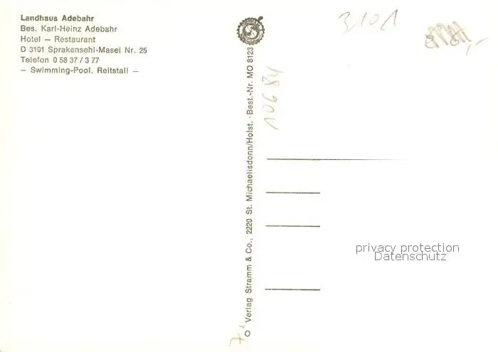 Sprakensehl Masel Landhaus Adebahr Sprakensehl postalisch nicht gelaufen nach 1965 Erhaltung siehe scans [LiesaD40] LiesID40