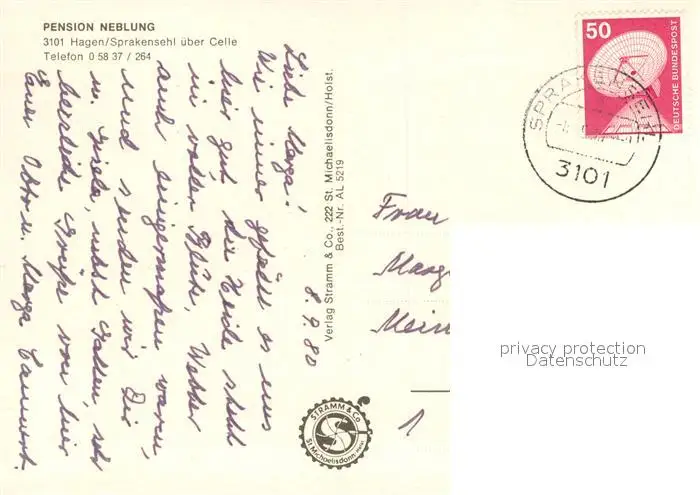 Sprakensehl Pension Neblung Sprakensehl postalisch gelaufen 1980 Erhaltung siehe scans [FriedD77] Frierer