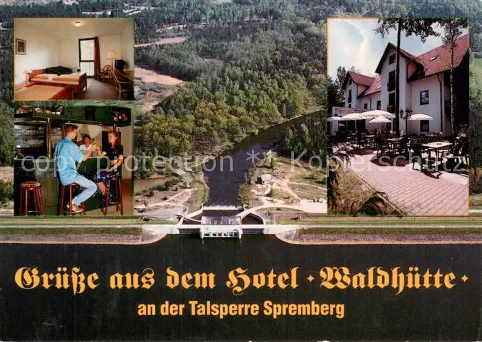 AK / Ansichtskarte Spremberg_Niederlausitz Hotel Waldhuette Zimmer Bar Terrasse Panorama Spremberg_Niederlausitz