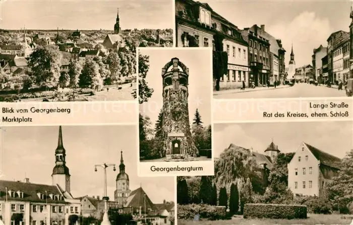 AK / Ansichtskarte Spremberg_Niederlausitz Marktplatz Georgenbergturm Lange Strasse Rat des Kreises Schloss Spremberg_Niederlausitz
