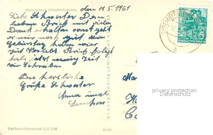 Spremberg_Niederlausitz Marktplatz Georgenbergturm Lange Strasse Rat des Kreises Schloss Spremberg_Niederlausitz postalisch gelaufen 1961 Erhaltung siehe scans [KathaD81] Kathoren