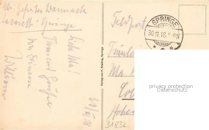 Springe_Deister Koellnischfeld Forsthaus Springe_Deister postalisch gelaufen 1918 Feldpost Erhaltung siehe scans [FriedD77] Feldpost Frierer