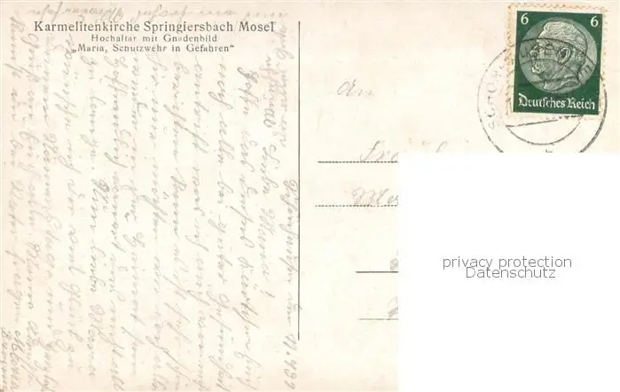 Springiersbach Karmelitenkirche Hochaltar mit Gnadenbild Springiersbach postalisch gelaufen 1921-1965 Erhaltung siehe scans [FriedD77] Frierer