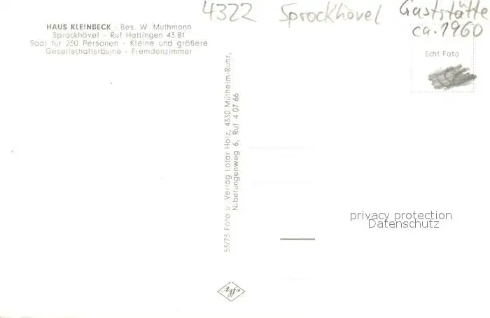Sprockhoevel Gaststaette Haus Kleinbeck mit Teich Sprockhoevel postalisch nicht gelaufen 1960 Erhaltung siehe scans [LiesaD40] LiesID40