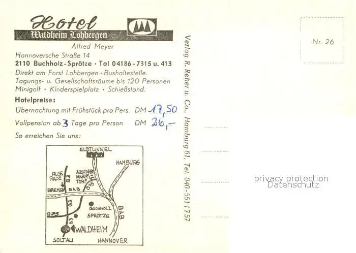 Sproetze Hotel Waldheim Lohbergen Minigolf Swimming Pool Sproetze postalisch nicht gelaufen nach 1965 Erhaltung siehe scans [FriedD77] Frierer
