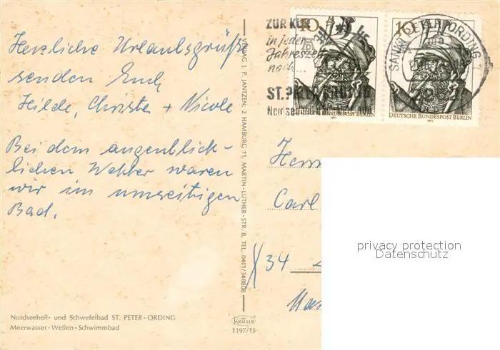 St-Peter-Ording Meerwasser Wellen Schwimmbad postalisch gelaufen nach 1965 Erhaltung siehe scans [WerneD78] WernPID7