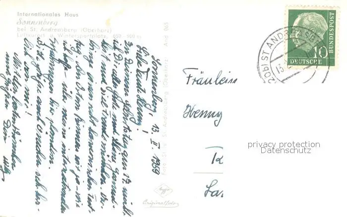 St_Andreasberg_Harz Internationales Haus Sonnenberg Fliegeraufnahme St_Andreasberg_Harz postalisch gelaufen 1959 Erhaltung siehe scans [WerneD78] WernPID7