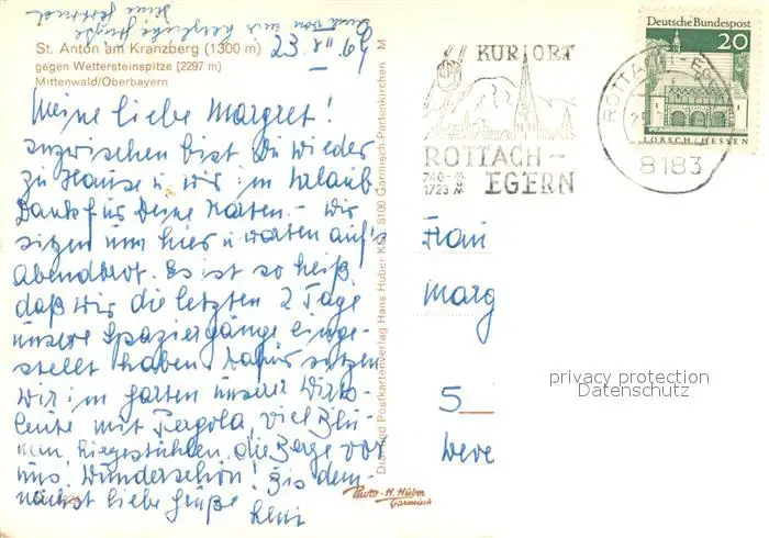 St_Anton_Kranzberg Hotel Restaurant gegen Wettersteinspitze St_Anton_Kranzberg postalisch gelaufen 1969 Erhaltung siehe scans [FriedD77] Frierer
