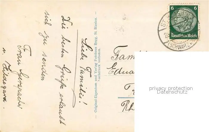 St_Blasien Blick vom Weissenstein St_Blasien postalisch gelaufen 1921-1965 Erhaltung siehe scans [WerneD78] WernPID7