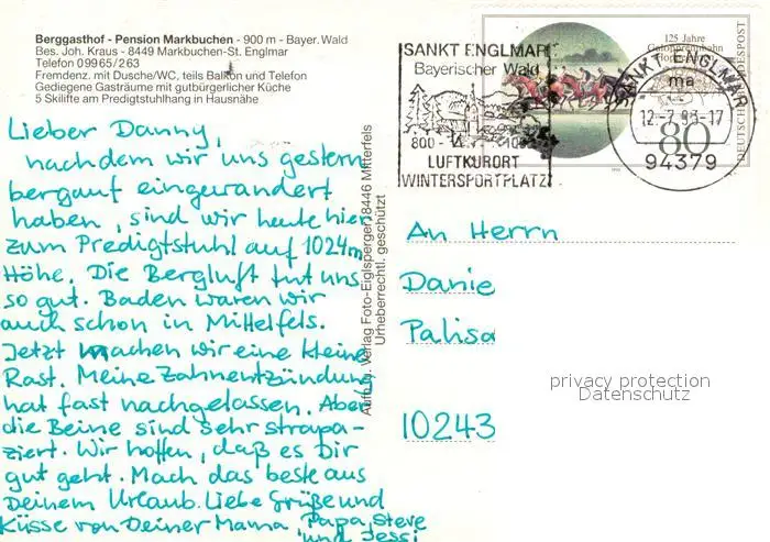 St_Englmar Berggasthof Pension Markbuchen St_Englmar postalisch gelaufen 1985 Erhaltung siehe scans [WerneD78] WernPID7