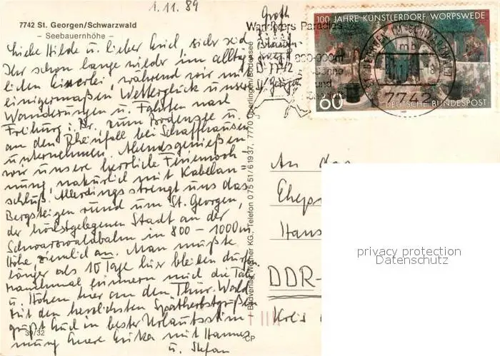 St_Georgen_Schwarzwald Seebauernhoehe St_Georgen_Schwarzwald postalisch gelaufen 1989 Fliegeraufnahme Erhaltung siehe scans [FriedD77] Fliegeraufnahme Frierer