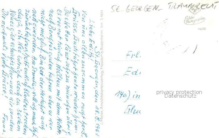 St_Georgen_Traunreut Ortsansicht mit Kirche postalisch gelaufen 1961 Erhaltung siehe scans [FriedD77] Frierer