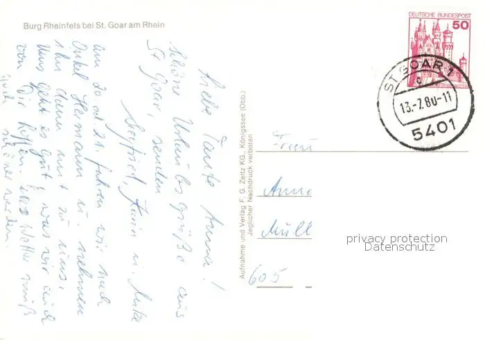 St_Goar Burg Rheinfels St_Goar postalisch gelaufen 1980 Erhaltung siehe scans [NatalD47] NataID47