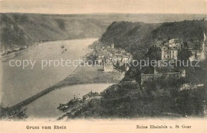 St_Goar Panorama Rheintal mit Burgruine Rheinfels St_Goar postalisch nicht gelaufen bis 1920 Erhaltung siehe scans [FriedD77] Frierer
