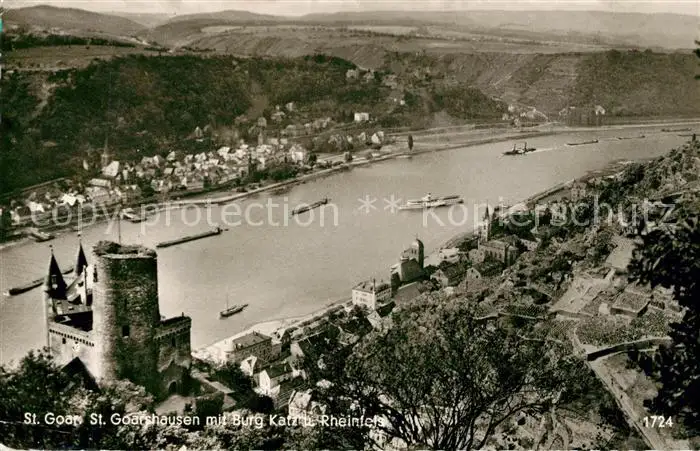 St_Goar und St Goarshausen mit Burg Katz und Rheinfels St_Goar postalisch gelaufen 1957 Erhaltung siehe scans [WerneD78] WernPID7