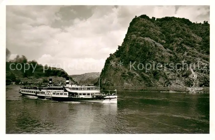 St_Goarshausen Die Lorelei mit Dampfer Kaiser Wilhelm St_Goarshausen postalisch gelaufen 1952 Erhaltung siehe scans [WerneD78] WernPID7