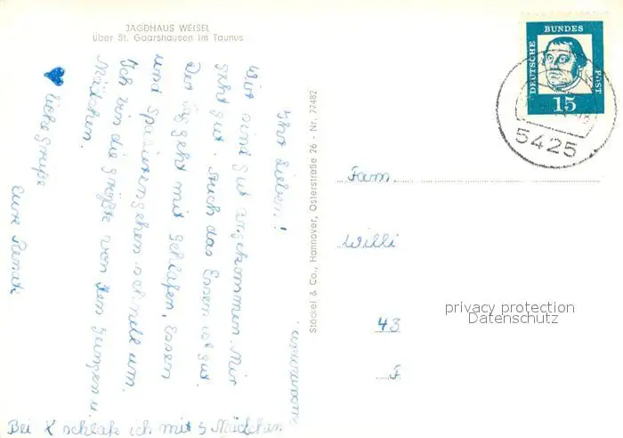 St_Goarshausen Kategorie Alte Ansichtskarten Postkarten bx75057 St_Goarshausen Jagdhaus Weisel St_Goarshausen postalisch gelaufen 1964 Erhaltung siehe scans [KathaD81]