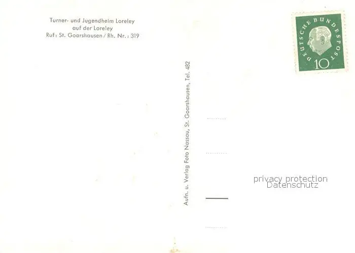 St_Goarshausen Turner- und Jugendheim Loreley St_Goarshausen postalisch nicht gelaufen 1921-1965 Erhaltung siehe scans [FriedD77] Frierer