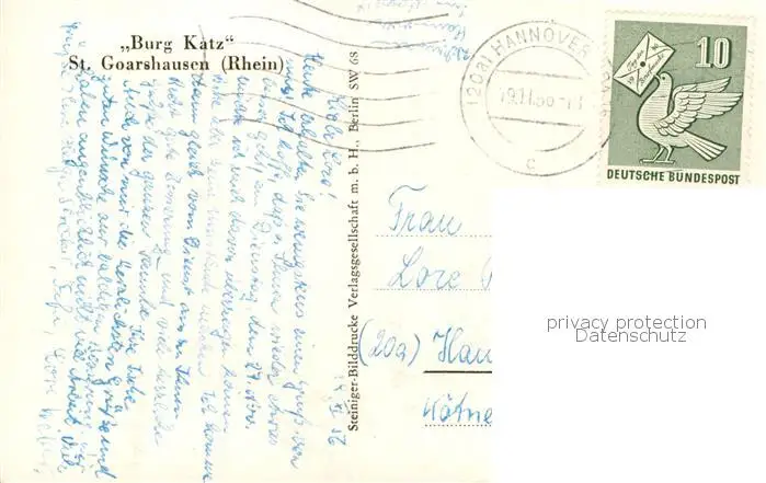 St_Goarshausen_Rhein Burg Katz postalisch gelaufen 1956 Erhaltung siehe scans [WerneD78] WernPID7