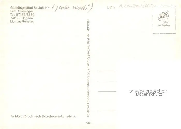 St_Johann_Wuerttemberg Hohe Warthe Gestuetsgasthof St_Johann_Wuerttemberg postalisch nicht gelaufen nach 1965 Erhaltung siehe scans [KathaD81] Kathoren