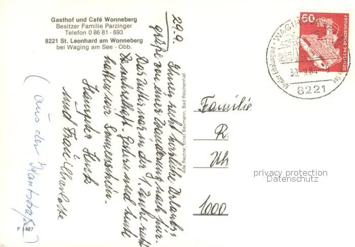 St_Leonhard_Wonneberg Gasthof Café Wonneberg Gastraum Blick zur Kirche St_Leonhard_Wonneberg postalisch gelaufen 1984 Erhaltung siehe scans [FriedD77] Frierer