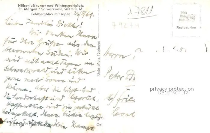 St_Maergen Feldbergblick Alpen St_Maergen postalisch gelaufen 1961 Erhaltung siehe scans [KathaD81] Kathoren