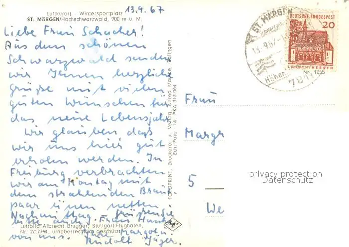 St_Maergen Luftkurort Wintersportplatz im Schwarzwald St_Maergen postalisch gelaufen 1967 Fliegeraufnahme Erhaltung siehe scans [FriedD77] Fliegeraufnahme Frierer