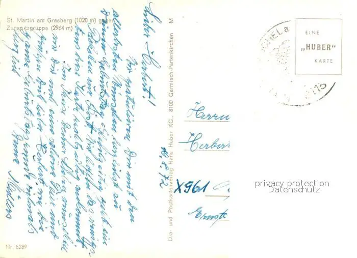 St_Martin_Grasberg Berghuette Restaurant Terrasse Fernsicht Zugspitzgruppe Huber Karte Nr. 8289 St_Martin_Grasberg postalisch gelaufen 1972 Erhaltung siehe scans [FriedD77] Frierer