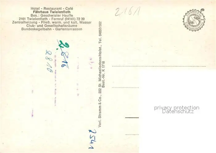 St_Michaelisdonn Hotel Restaurant Café Faehrhaus Twielenfleth St_Michaelisdonn postalisch nicht gelaufen nach 1965 Erhaltung siehe scans [LiesaD40] LiesID40