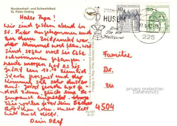 St_Peter-Ording Nordseeheil- und Schwefelbad Fliegeraufnahme St_Peter-Ording postalisch gelaufen 1982 Erhaltung siehe scans [FriedD77] Frierer