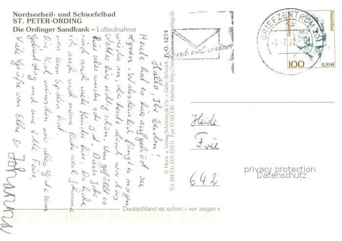 St_Peter-Ording Ordinger Sandbank Fliegeraufnahme St_Peter-Ording postalisch gelaufen 1992 Erhaltung siehe scans [FriedD77] Frierer