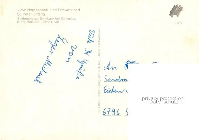St_Peter-Ording Seebruecke zur Sandbank bei Springtide Arche Noah St_Peter-Ording postalisch nicht gelaufen 1979 Erhaltung siehe scans [FriedD77] Frierer