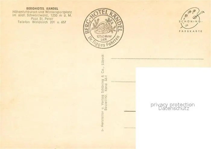 St_Peter_Schwarzwald Berghotel Kandel St_Peter_Schwarzwald postalisch nicht gelaufen nach 1965 Erhaltung siehe scans [WerneD78] WernPID7