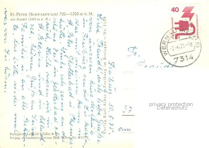 St_Peter_Schwarzwald Fliegeraufnahme mit Kandel St_Peter_Schwarzwald postalisch gelaufen 1975 Erhaltung siehe scans [WerneD78] WernPID7