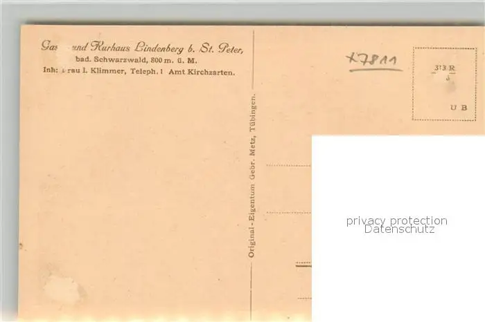 St_Peter_Schwarzwald Gast und Kurhaus Lindenberg St_Peter_Schwarzwald postalisch nicht gelaufen 1921-1965 Verlagstempel auf Karte Erhaltung siehe scans [WerneD78] Verlagstempel auf Karte WernPID7