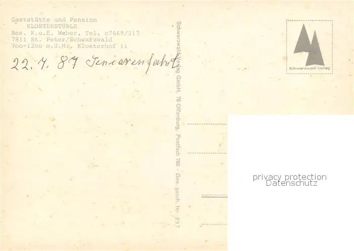 St_Peter_Schwarzwald Gaststaette Pension Klosterstueble Brunnen St_Peter_Schwarzwald postalisch nicht gelaufen 1987 Erhaltung siehe scans [FriedD77] Frierer