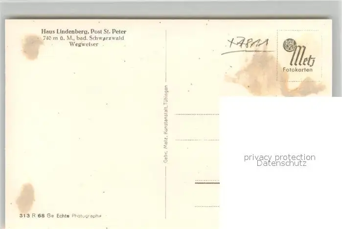 St_Peter_Schwarzwald Haus Lindenberg Wegweiser St_Peter_Schwarzwald postalisch nicht gelaufen 1921-1965 Verlagstempel auf Karte Erhaltung siehe scans [WerneD78] Verlagstempel auf Karte WernPID7