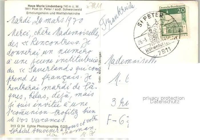 St_Peter_Schwarzwald Haus Maria Lindenberg St_Peter_Schwarzwald postalisch gelaufen 1970 Erhaltung siehe scans [KathaD81] Kathoren