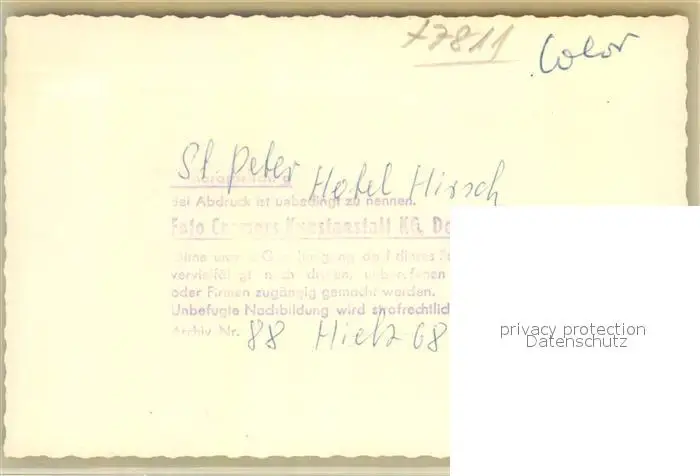 St_Peter_Schwarzwald Hotel Hirsch St_Peter_Schwarzwald postalisch nicht gelaufen 1968 Verlagsrohabzug (keine Postkartenrueckseite) Erhaltung siehe scans [KathaD81] Verlagsrohabzug (keine Postkartenrueckseite) Kathoren