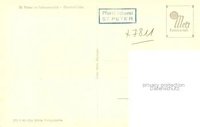 St_Peter_Schwarzwald Klosterkirche St_Peter_Schwarzwald postalisch nicht gelaufen 1921-1965 Erhaltung siehe scans [WerneD78] WernPID7