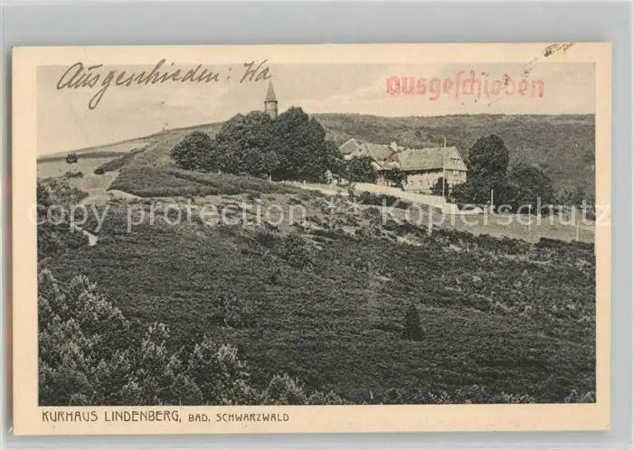 St_Peter_Schwarzwald Kurhaus Lindenberg St_Peter_Schwarzwald postalisch nicht gelaufen 1921-1965 Verlagstempel auf Karte Erhaltung siehe scans [WerneD78] Verlagstempel auf Karte WernPID7