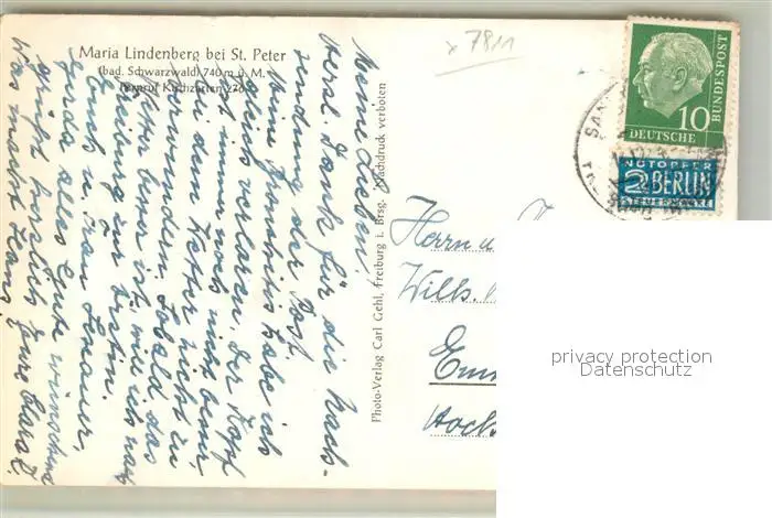 St_Peter_Schwarzwald Maria Lindenberg St_Peter_Schwarzwald postalisch gelaufen 1921-1965 Erhaltung siehe scans [KathaD81] Kathoren