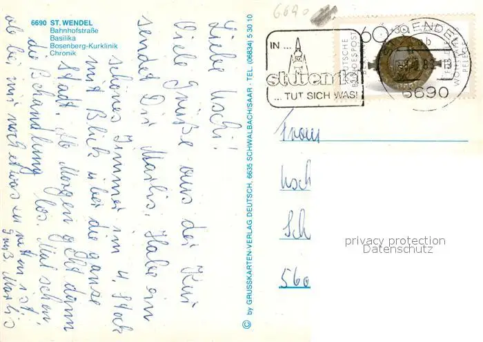 St_Wendel Bahnhofstrasse Basilika Bosenberg Kurklinik Chronik St_Wendel postalisch gelaufen 1983 Erhaltung siehe scans [FriedD77] Frierer
