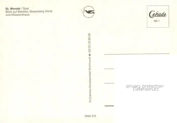 St_Wendel Blick auf Basilika Bosenberg Klinik und Missionshaus Fliegeraufnahme St_Wendel postalisch nicht gelaufen 1996 Erhaltung siehe scans [FriedD77] Frierer